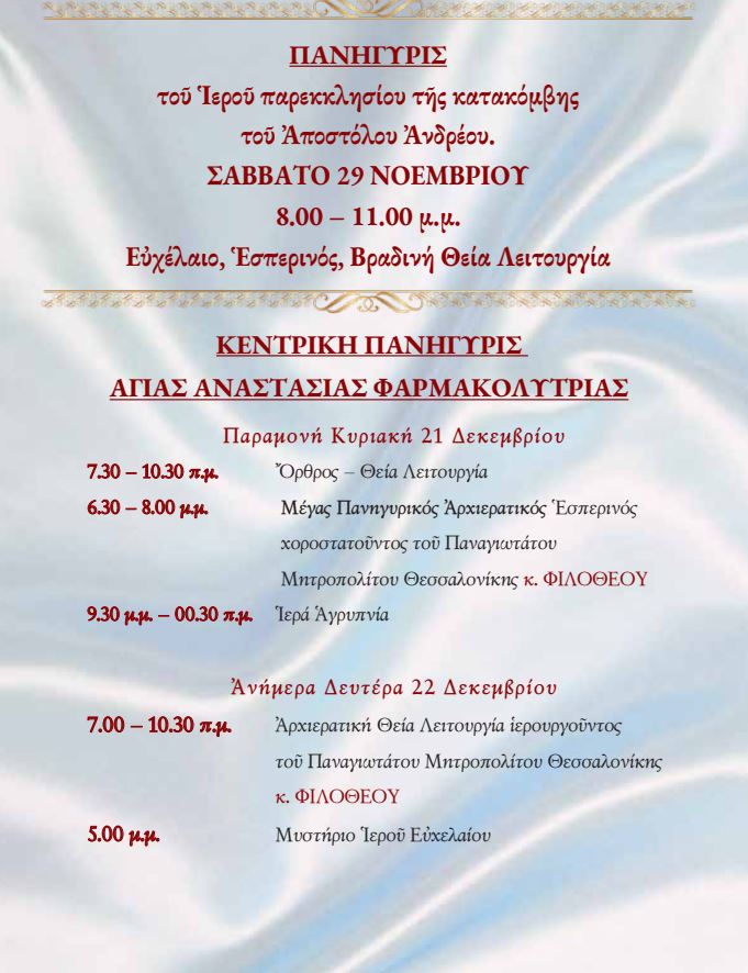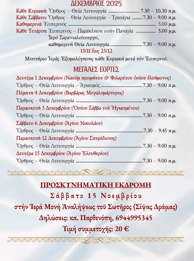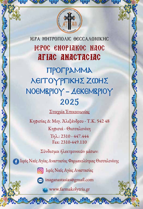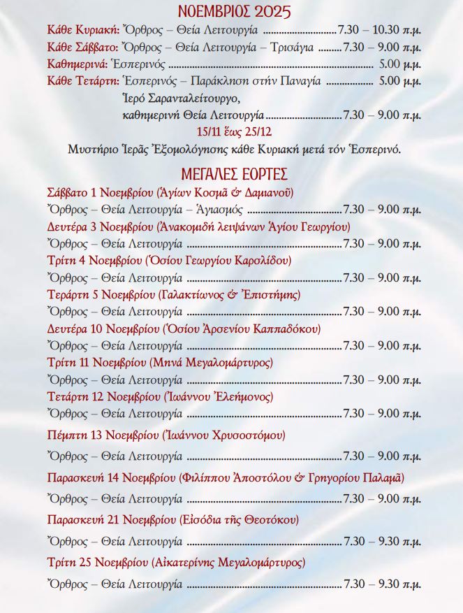 Πρόγραμμα Λειτουργικής Ζωής Νοεμβρίου – Δεκεμβρίου 2025